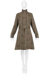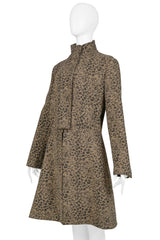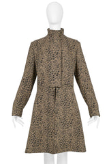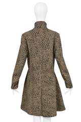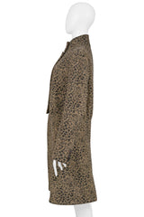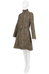 Resurrection Vintage is excited to offer a vintage Helmut Lang neutral tone leopard coat featuring high collar, front placket, a-line skirt and hidden closure.