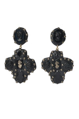 Resurrection Vintage is excited to offer a pair of Richard Minadeo one-of-a-kind black cross clip earrings featuring onyx and jet pieces, black and silver-tone cameos, and silver-tone studs set in black resin.