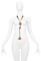 YVES SAINT LAURENT YSL WOOD BEAD & CORD NECKLACE