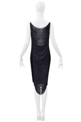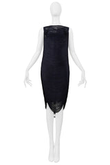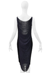 Resurrection Vintage is thrilled to offer a vintage Jil Sander by Raf Simons black fringe dress from the spring 2009 collection, featuring draped fringe panels, straight neckline, attached dress lining, sleeveless, and below-the-knee length.