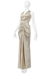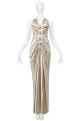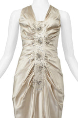 CHRISTIAN DIOR BY JOHN GALLIANO CHAMPAGNE SATIN DRESS WITH BEADING