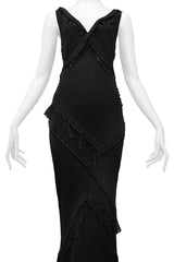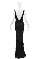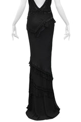 JOHN GALLIANO BLACK BEADED RUFFLE EVENING GOWN