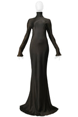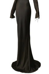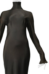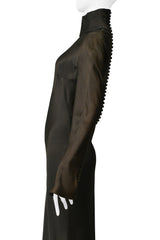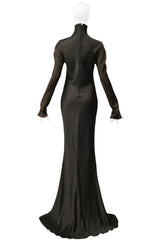 JOHN GALLIANO BRONZE SATIN GOWN WITH HIGH NECK AND DRAMATIC LONG SLEEVES 1998