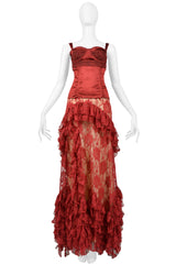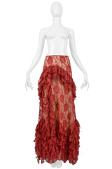 JOHN GALLIANO BURGUNDY LACE BALLGOWN SKIRT & CORSET TOP
