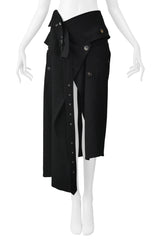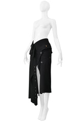 JOHN GALLIANO BLACK WOOL TRENCH WRAP SKIRT FW 1999