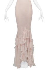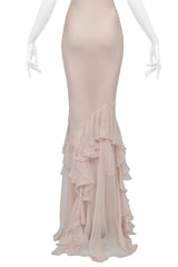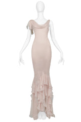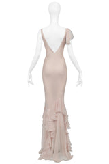 JOHN GALLIANO PINK BLUSH CHIFFON EVENING GOWN WITH RUFFLES