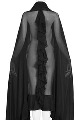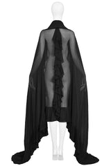 Resurrection Vintage is excited to present a vintage Katy Rodriguez black crinkle chiffon giant shawl with ruffles.