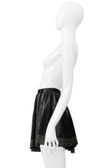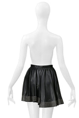 ALAIA BLACK LEATHER MINI SKIRT WITH GROMMETS 2014