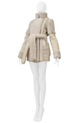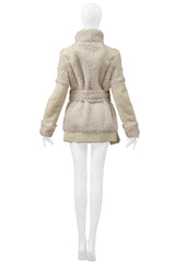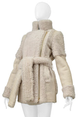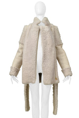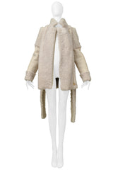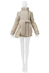 LANVIN OFF WHITE SUEDE & SHEARLING COAT WITH BELT