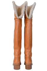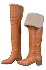 Resurrection Vintage is excited to offer a pair of Celine natural leather and shearling thigh-high boots.