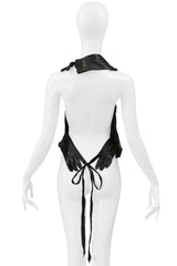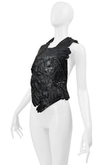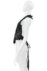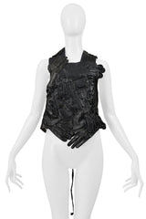 Resurrection Vintage is excited to offer an iconic Maison Martin Margiela artisanal leather "glove" gilet from 2001. This unique top is composed of black leather vintage gloves sewn together to create a halter top.