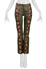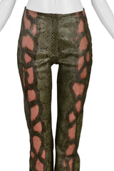 Resurrection Vintage is excited to offer a pair of vintage Jitrois green and pink python leather pants featuring a center front zipper, slim fit, and a leather back panel.