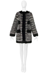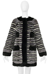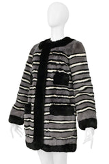 MARC JACOBS GREY AND BLACK STRIPED RABBIT FUR COAT 2014