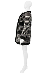 Resurrection is thrilled to present a stunning Marc Jacobs grey and black striped rabbit fur coat from the 2014 Resort Collection featuring an oversized fit, hidden front buttons, collarless, slit pockets, and full interior lining.