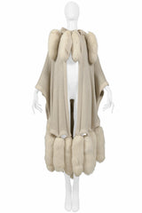 ALIMIA PARIS OFF-WHITE CAPE WITH FUR TAILS & LEATHER PATCHES