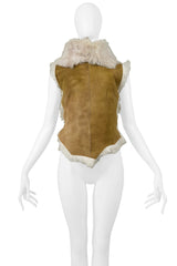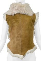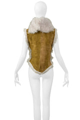 Resurrection Vintage is excited to present a vintage Plein Sud brown suede top with a fur high collar, trim, and an interior with side laces.