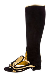 PRADA BLACK SUEDE & GOLD LEATHER FAIRY BOOTS WITH TULIPS 2008