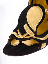 Resurrection Vintage is excited to offer a pair vintage Prada "Fairy" black suede open toe boots with gold leather details from the 2008 runway collection. These boots have never been worn.