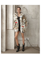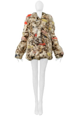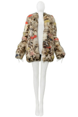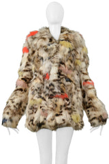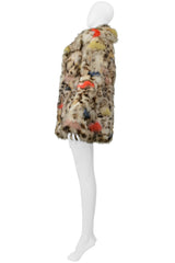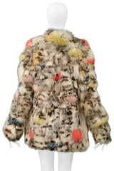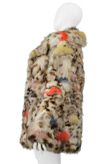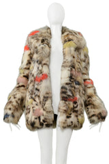 SAINT LAURENT PARIS WHITE & MULTICOLOR STENCILED FOX FUR CHUBBY COAT 2017