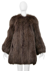 Resurrection is thrilled to present a stunning Marc Jacobs brown fox fur chubby coat with an oversized fit, spring hook and eye closure, side pockets, and full interior lining.