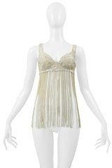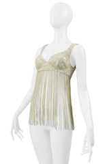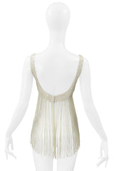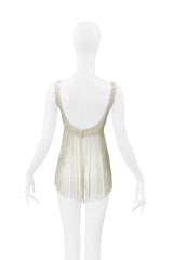 KATHARINE HAMNETT OFF WHITE SEQUIN BRA WITH BEADED FRINGE