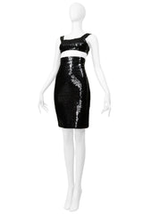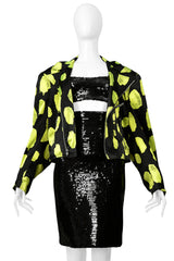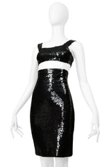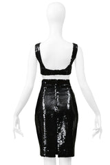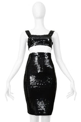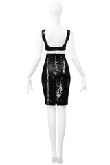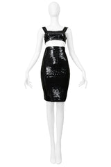 STEPHEN SPROUSE BLACK SEQUIN BRA TOP AND HIGH WAISTED SKIRT ENSEMBLE 1988