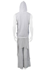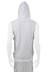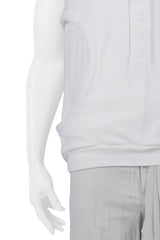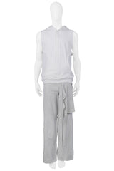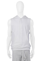 Resurrection Vintage is excited to offer a vintage Raf Simons white sleeveless sweatshirt featuring a large hood, front placket, and circular pockets.