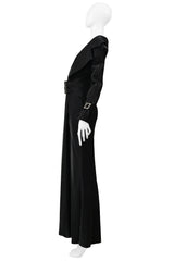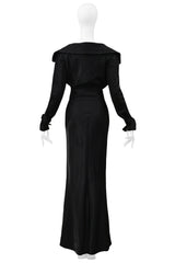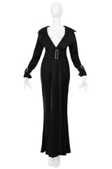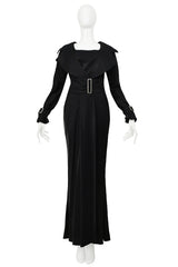 GIANFRANCO FERRE BLACK METALLIC TRENCH GOWN WITH BELT & CRYSTAL HARDWARE