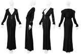 Resurrection Vintage is excited to offer a vintage Gianfranco Ferre black metallic trench coat dress featuring an exposed neckline, trench coat collar, rhinestone buckles at the cuffs and waist belt, wrap over skirt, and gown length. A non attached shell top is included. See picture below.