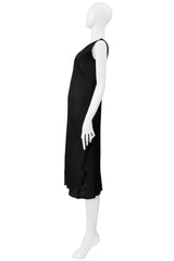 Resurrection Vintage is excited to offer a vintage Issey Miyake black pleats please black "staircase" dress with laser cut details, featuring laser perforations at the chest, and down the center to the hem, round neckline, sleeveless, horizontal "staircase" tiers at each side, and below the knee length.