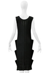 ISSEY MIYAKE PLEATS PLEASE BLACK "STAIRCASE" PLEATS DRESS WITH LASER CUT DETAILS