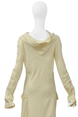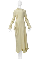 Resurrection Vintage is excited to offer a vintage Yohji Yamamoto butter cowl neck dress from the 2000-01 collection, featuring long sleeves, asymmetrical fit, side pockets, and an ankle-length design.