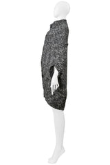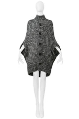 Resurrection Vintage is thrilled to offer a vintage Junya Watanabe grey melange cardigan cape sweater from the 2008 collection, featuring batwing sleeves, large front buttons, a high neck, relaxed fit, and above-the-knee length.
