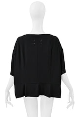 Resurrection Vintage is thrilled to offer a vintage Maison Martin Margiela black short sleeved top from 2002, featuring a round neck, drop shoulders, wide short sleeves, and a slight ruffled back hem.