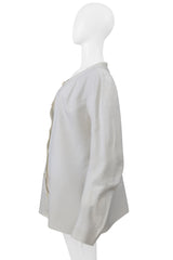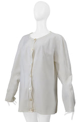 Resurrection Vintage is thrilled to offer a vintage Maison Martin Margiela white cardigan with an oversized crewneck from the spring 2001 collection, featuring front buttons down the center, a wide neck, a straight fit, and long sleeves.