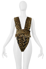 Resurrection Vintage is thrilled to present a Saint Laurent Paris by Anthony Vaccarello leopard print bodysuit with a deep V neckline, pleated bottoms, and side closure.