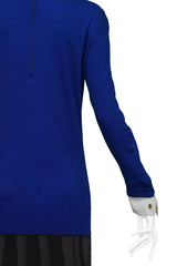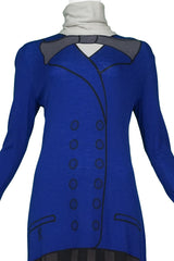 Resurrection Vintage is excited to offer a vintage multicolor Roberta di Camerino trompe l'oeil wool maxi dress featuring long sleeves, turtle neck, long sleeves, and blue, grey, black, and off-white graphic print.