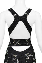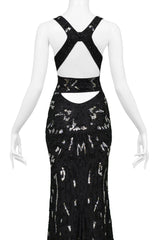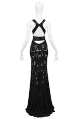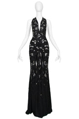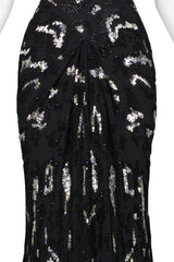 ROBERTO CAVALLI BLACK GOWN WITH SILVER & BLACK SEQUIN
