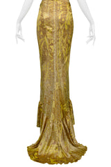 ROBERTO CAVALLI GOLD SATIN BUSTIER GOWN WITH TRAIN