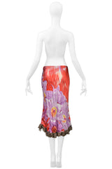 ROBERTO CAVALLI RED & PURPLE LEOPARD & FLORAL 2 PIECE SKIRT AND TOP 2000