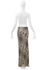 Resurrection Vintage is excited to present a vintage Roberto Cavalli bias cut maxi skirt that features zebra print and floral insets, elastic waistband, and ankle length.