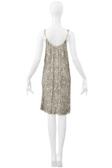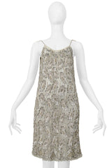 SAINT LAURENT PARIS BY HEDI SLIMANE FLORAL LACE SLIP DRESS WITH SILVER BEADING 2016