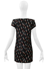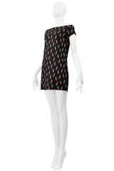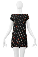 SAINT LAURENT PARIS BY HEDI SLIMANE BLACK MINI DRESS WITH LIPSTICK PRINT 2015