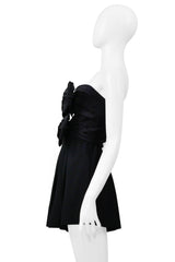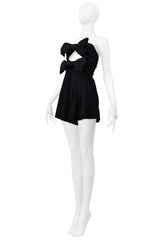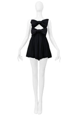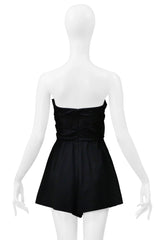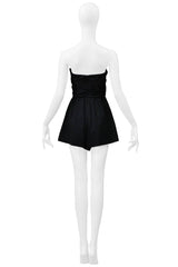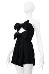 Resurrection is excited to offer a Saint Laurent Paris by Anthony Vaccarello black romper with bows and a cut-out chest featuring a strapless fit, pleated shorts, and a hidden back zipper closure.