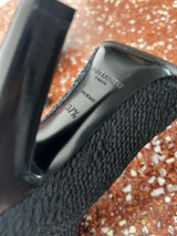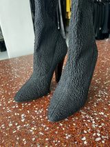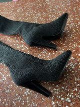 SAINT LAURENT PARIS BLACK KOLLER STRETCH CLOQUE THIGH HIGH SOCK BOOTS