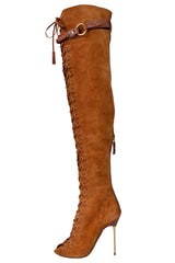 PUCCI BROWN SUEDE CORSET THIGH HIGH BOOTS WITH METAL HEELS 2011