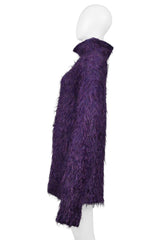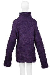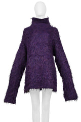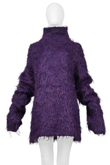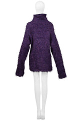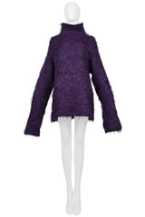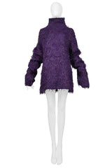 Resurrection Vintage is excited to present a vintage Yohji Yamamoto purple wool unisex oversized sweater featuring textured mohair, a mock neck, and extra long sleeves. This piece can be worn as a sweater or sweater dress.