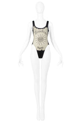 Resurrection Vintage is excited to offer a vintage Moschino "Sun Drawing" one-piece swimsuit, featuring printed front graphic and cut away butterfly back. This swimsuit has never been worn.