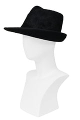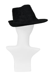 Resurrection Vintage is excited to offer a vintage Phillip Treacy black fancy hat, featuring a wide brim, soft fuzzy texture, and an angled brim.