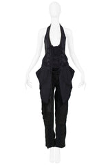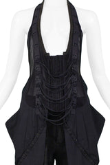 Resurrection is pleased to offer this vintage Balenciaga by Nicolas Ghesquiere iconic halter corset vest top featuring a deep U-neckline, layered cording with looped details at center front, pleated hip pockets with hook panels, and racerback. Collection 2002.